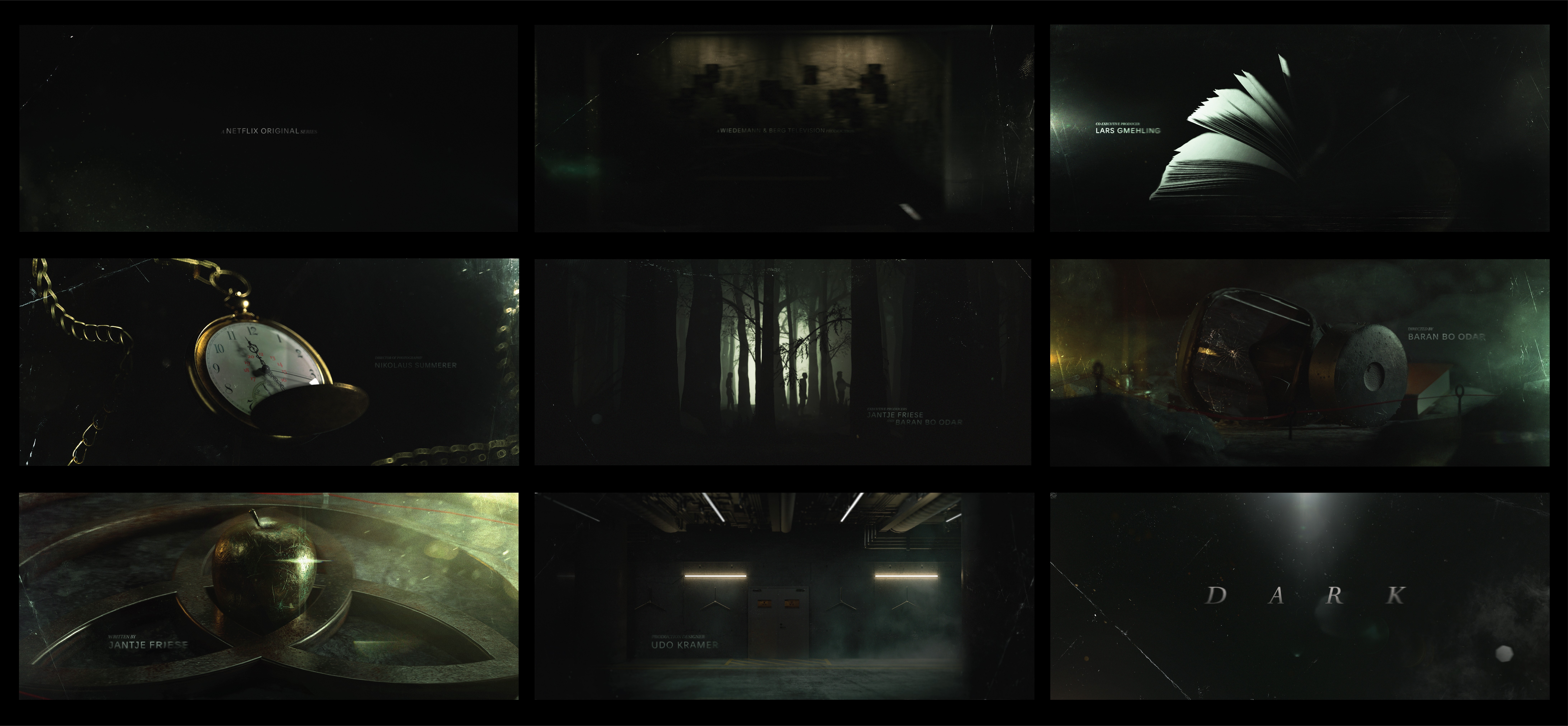 A title sequence pitch for Dark, Netflix's psychological thriller. The concept zeroes in on the show's key figures, locations, and moments — each frame weighted with narrative tension. The sequence leans into the show's signature feeling of controlled chaos, using carefully composed vignettes to mirror the unease that runs through every layer of the story.
